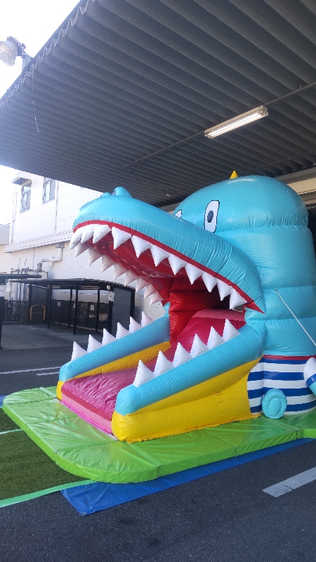 顔出しパネルや怪獣?ワニ?の滑り台がお出迎え